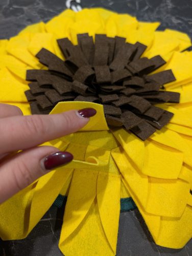 Tapis de fouille en forme de fleur de tournesol avec de nombreuses cachettes. Tissu en matière feutrine. Dessous antidérapant et une petite cordelette pour l’attacher si besoin.
